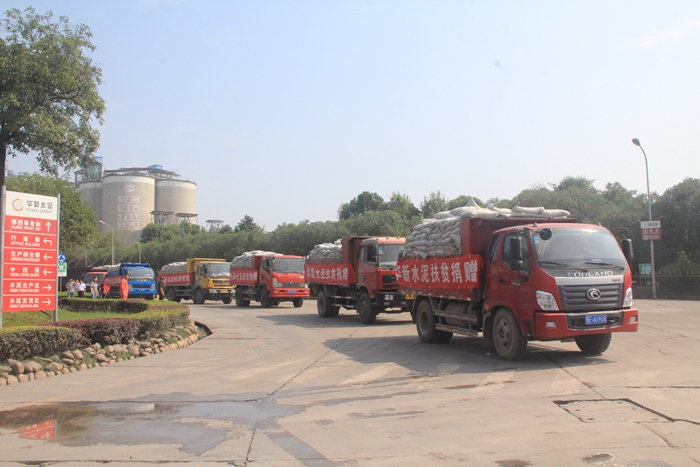首批捐贈(zèng)水泥運(yùn)出廠區(qū)