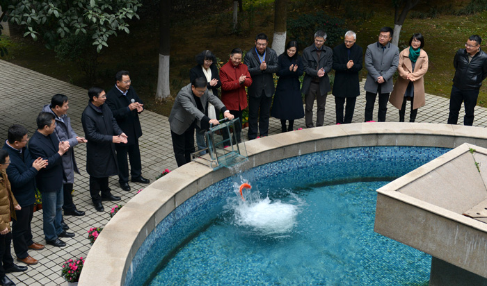 隨后,公司黨委書記、總裁李葉青投放錦鯉,當(dāng)寓意吉祥的錦鯉躍入水中時(shí),現(xiàn)場(chǎng)掌聲雷動(dòng),干部員工激動(dòng)自豪之情溢于言表,慶?;顒?dòng)也在歡聲笑語(yǔ)中結(jié)束。